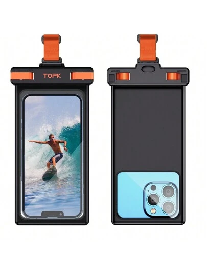 TOPK Waterproof Phone Pouch, IPX8 Waterproof Phone Case Compatible With IPhone 16 15 14 13 12 11 Pro Max Xs Plus - Orange - View 1