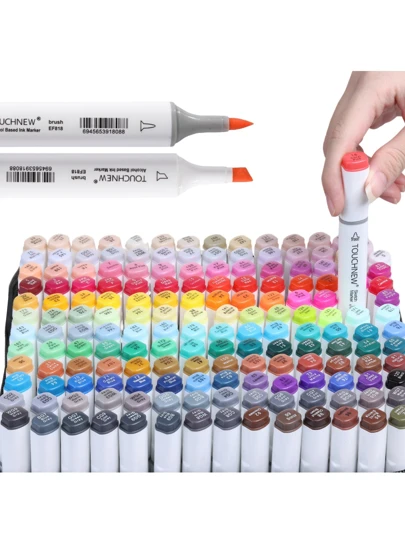 TOUCHNEW 30/60/80/168 Colors Dual Tip,Alcohol Soft Brush Markers,Selectable - Brush & Chisel Tip / Fine & Chisel Sketch Art Markers,School Supplies, Pens For Lettering Cards Drawing Coloring Illustrations - White - View 1