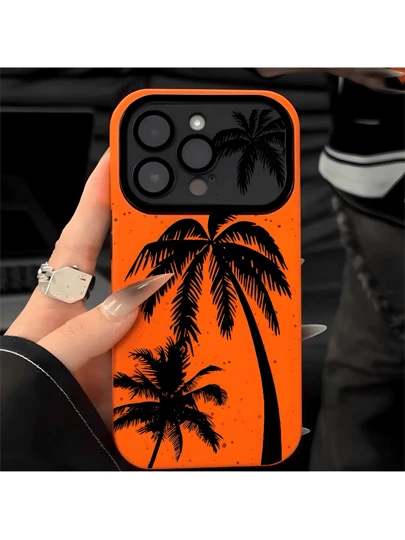 TPU Coconut Tree Phone Case With Large Window, Compatible With IPhone 17/17 Air/17 Pro/17 Pro Max/16/7/8/11/12/13/14/X/XR/Xs/Plus/Pro/Pro Max/SE2 - Orange - View 1