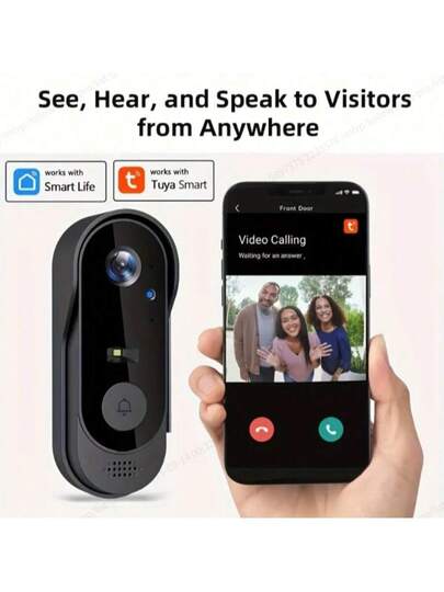 TUYA Smart Video Doorbell - Wireless Home Security Camera With Chime, Indoor/Outdoor Use, Rechargeable Battery, 2.4G WiFi, Night Vision, 2-Way Audio, Real-Time Alerts, Voice Control, Cloud & SD Card Storage - For Homeowners & Security Conscious Individuals - Ideal For Enhanced Home Security & Peace Of Mind - Multicolor - View 1
