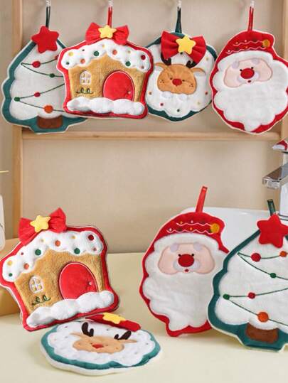 Tea Towels For Decorative, Drying, Cleaning, Cooking & Baking, Embroidered Christmas Holiday Design Towels Gift Set Including Xmas Santa Elk Xmas House Xmas Tree, Housewarming Gifts For Kitchen Back To School - Multicolor - View 1