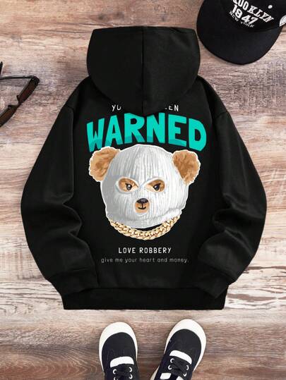 Teen Boy Slogan & Cartoon Graphic Sweatshirt - Black - View 1