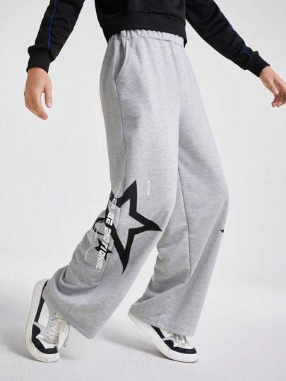 SHEIN Teen Boys' Fashionable Streetwear Style Flame & Star Print Casual Sweatpants, Suitable For Autumn/Winter Daily Wear - Grey - View 1