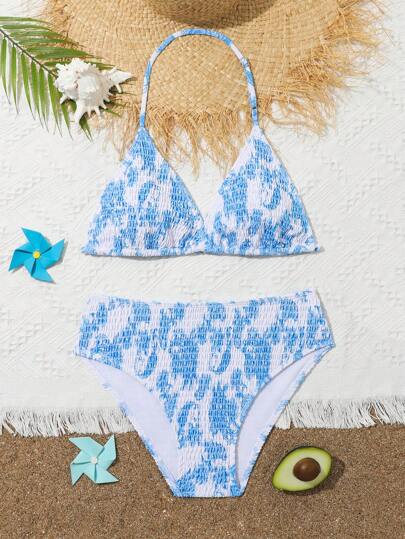 Teen Girl Bikini Set With Random Printing Summer Beach Kids Swimming ,Kids Beachwear - Blue - View 1