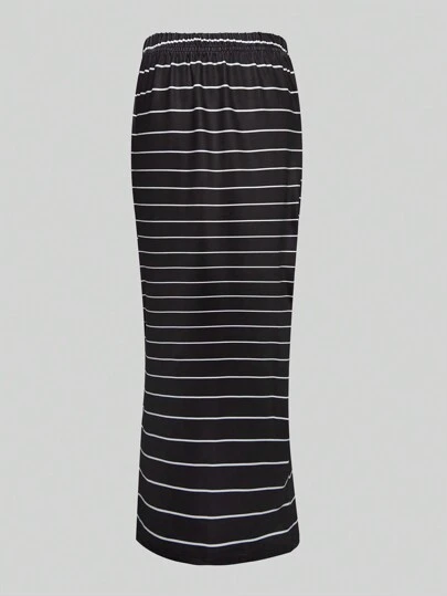 Teen Girl Striped Print Split Hem Skirt - Black - View 1
