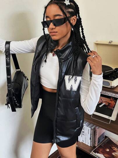 Teen Girls Fashionable Down Filled Vest - Black - View 1