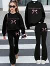 2 Pieces Teen Girl Soft Cute Slogan Bow Print Long Sleeve Hoodie Set, Teen Fashion For Camping Trip, Summer-Fall