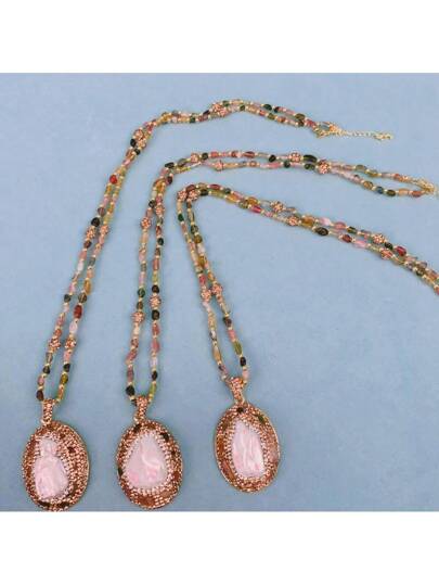 New Natural Tourmaline Necklace Premium Sense Baroque Pearl Antique Pendant Necklace Sweater Chain - Tourmaline Baroque Necklace - View 7