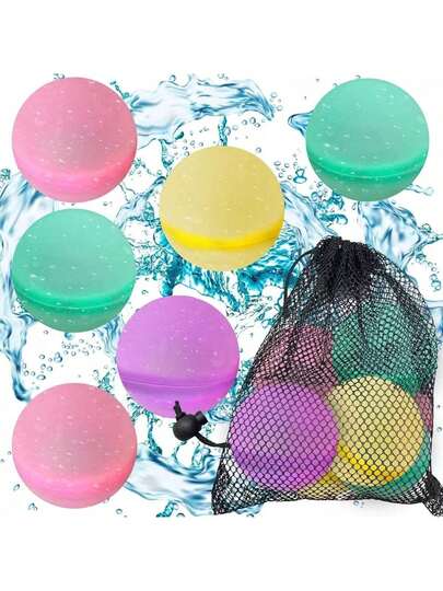 Teen Pool Games Reusable Water Polo, Silicone Quick Fill Water Polo, Summer Swimming Water ToysballWater Bombs, Outdoor Swimming Toys, Outdoor Swimming Toys, Summer Party Outdoor Toys, Beach WaterFight Games Water Play Toys, Family Activities, Holiday Parties, Swimming Pool Parties 6-Piece Set+Mesh Bag (Styles Are Shipped Randomly)Holiday Parties, Swimming Pool Parties 6-Piece Set+Mesh Bag (Styles Are Shipped Randomly) - Multicolor - View 6
