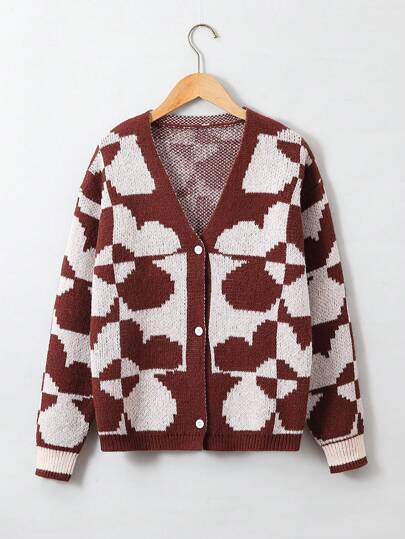 Teenage Girls' Geometric Pattern Cardigan - Multicolor - View 1