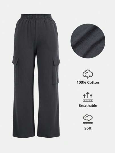 SHEIN BASICS Terry Fleece Flap Pocket Side Cargo Pants - Dark Grey - View 8