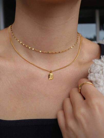 Bộ 2 dây chuyền mặt vuông hai lớp, dây chuyền choker đa năng.
