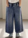 Genkimix Kids Young Girl Casual All-Match Everyday Versatile Button Front Detail Elastic Waist Raw Hem Wide Leg Jeans Fall Winter