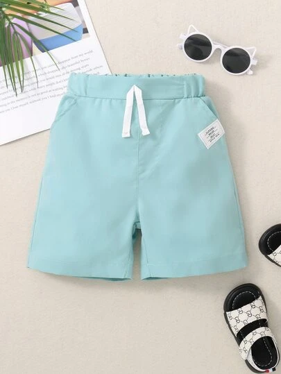 Toddler Boys Letter Patched Detail Tie Front Shorts - Blue - View 1