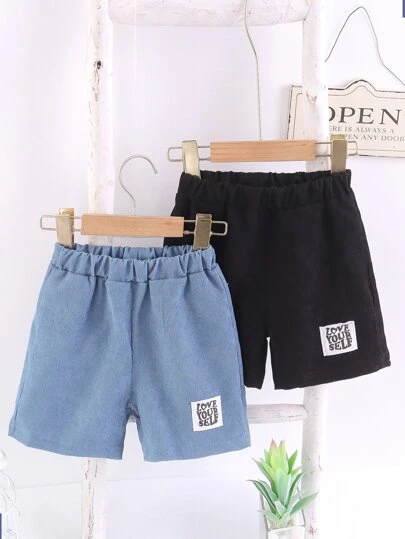 Toddler Boys 2pcs Slogan Patched Detail Shorts - Multicolor - View 1