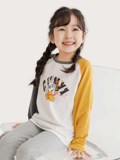 Toddler Girls 1pc Rabbit & Letter Graphic Raglan Sleeve Tee - White - View 1