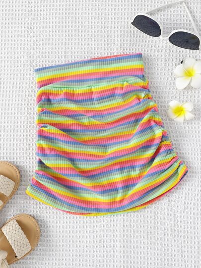 Toddler Girls Block Striped Ruched Side Skirt - Multicolor - View 1