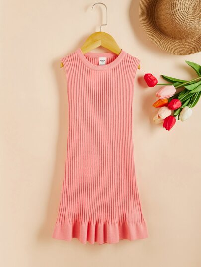 Toddler Girls Ribbed Knit Ruffle Hem Sweater Dress - Pink - View 1
