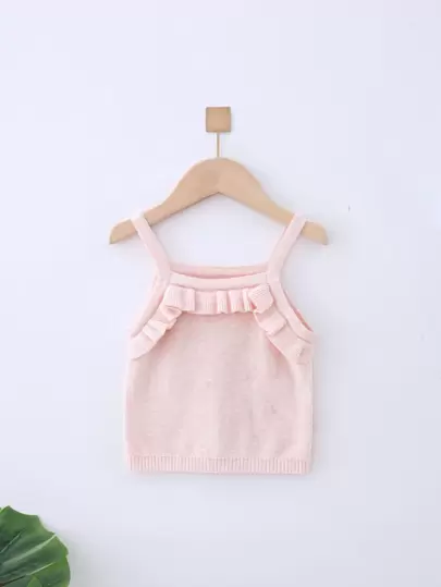 Toddler Girls Ruffle Trim Cami Knit Top - Baby Pink - View 1