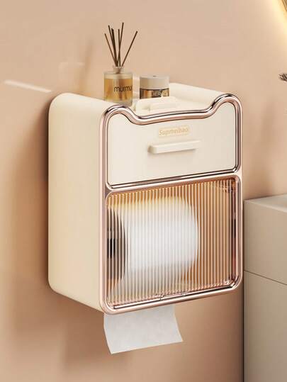 Toilet Paper Box Toilet Tissue Box Storage Rack Perforation-Free Wall Hanging Toilet Roll Paper Storage Rack 1 Piece - Multicolor - View 1
