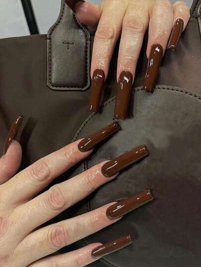 Transform Your Nails With 24 Pcs Long Square Caramel Latte Brown Press On Nails Autumn/Winter New White Fake Nail With 1 Piece Jelly And 1 Piece File Strip Nail Supplies - Multicolor - View 1