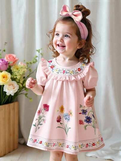 Travachic KIDS Babygirl Summer Floral Print Loose Casual Dress - Pink - View 1