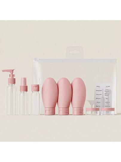 Travel Refillable Bottle Set, Spray, Lotion, Shampoo, Shower Gel Soft Tube Containers, Cosmetic Empty Liquid Bottles, Portable Refill Tools - Pink - View 1
