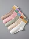 5 Pairs Women's Short Socks, Japanese Style Ruffle Edge, Comfortable Soft & Fashionable Casual Socks, College Style Versatile Everyday Wear, All Season