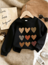 Tween Girl Leopard Heart Print Pullover Sweatshirt, Long Sleeve Knit Girls Tops, Spring & Autumn