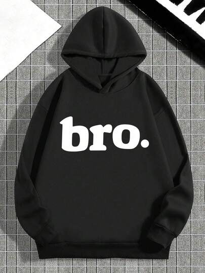 Teens/Tween Boy Bro Letter Print Dropped Shoulder Casual Sweatshirt, Autumn/Winter - Black - View 1