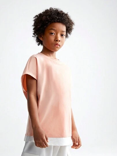 SHEIN Tween Boy Knitted Color Block Sleeveless Sweater, Loose Fit Casual Tank Top - Pink - View 1
