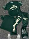 SHEIN 2pcs Tween Boy Classic Cool Graphic Print, Stylish Slogan Print, Round Neck T-Shirt And Flare Pants Casual Outfit Set, Suitable For Spring/Summer , Daily Wear, Sports, Outings, School, Parties, Festivals, Photoshoots