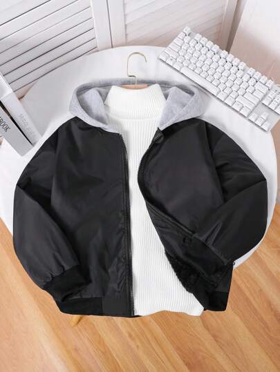Tween Boys Basic Casual Thick Fleece Hoodie Jacket - Black - View 1