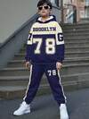 2pcs Tween Boy Casual Minimalist Long Sleeve Hoodie Set, Suitable For Autumn/Winter, Classic City Name Text Print, Number 78 Text Print, G7 Text Print, Classic Sports Style Graphic Print