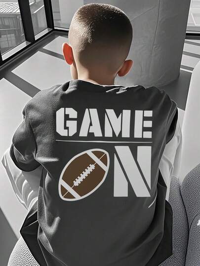 Tween Boys Students Casual Printed Round Neck Short Sleeve T-Shirt, Summer Top - Dark Grey - View 1