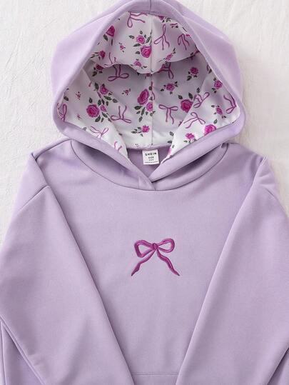 Tween Girl Casual Cute Pink Bow Embroidered Sweatshirt - Mauve Purple - View 8