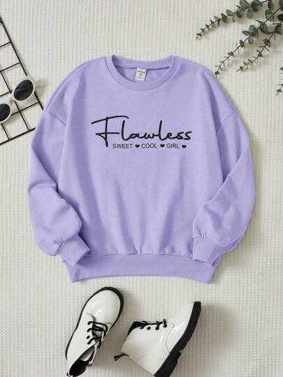SHEIN Tween Girl Letter Graphic Drop Shoulder Sweatshirt - Lilac Purple - View 1