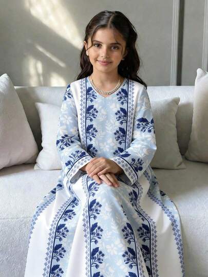 Tween Girls' V-Neck Floral Print Casual Loose Party & Outing Dress - Multicolor - View 1