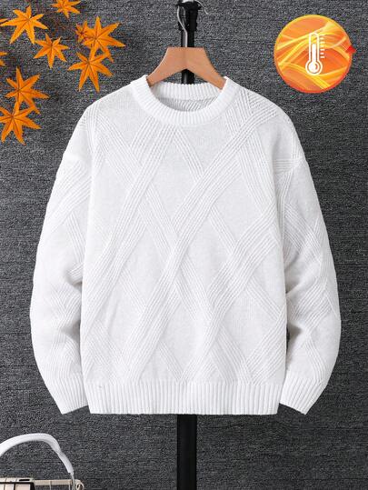 Tweenboy Casual Christmas Green Textured Crew Neck Sweater, Suitable For Winter, School And Travel - White - View 1