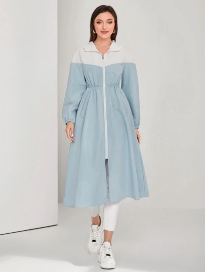Mulvari Two Tone Zip Up Hooded Coat - Blue and White - View 1