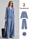 Franclia 2pcs Minimalist Elegant Autumn Shirt & Straight Leg Slit Pants Set