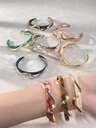 1pc Curved Color Block Stylish Dual-Tone Metal Resin Bracelet, Suitable For Daily Wear, Parties, Graduations, Weddings, Beach Vacations, Etc. (Product Can Be Self-Adjusted For Size, No Size Complaints Accepted)