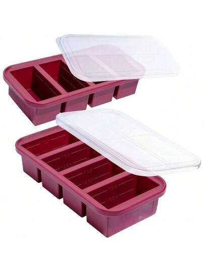 1 Cup Silicone Freezer Tray With Lids, Perfect For Storing Broth, Leftovers, Ri, Sau And More, Silicone Soup Freezer Molds For Meal Prepping  Sprles  2Pack - Cranberry + 2-Pack - View 1