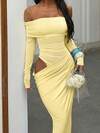 WOWDARK Yellow Off Shoulder Hollow-Out Dress, Elegant Fitted Long Dress For Women, Suitable For Valentine's Day, Dates, Gatherings, Parties, Travel, Vacation, Beach Spring