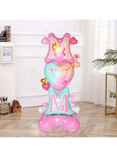 1pc, New 61-Inch Tall Aluminum Foil Balloon With Heart-Shaped Base - Perfect Room Decoration For Celebrating Mother's Day - Multicolor - View 1
