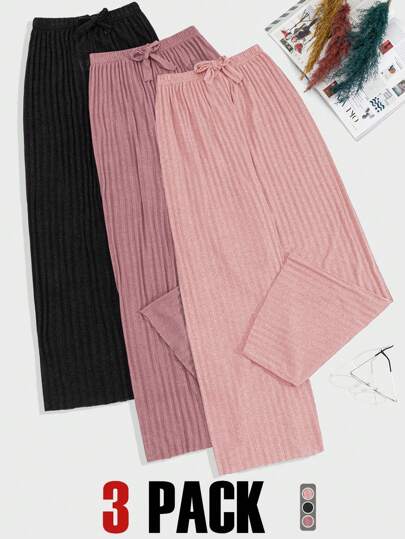 EURMUSE 100%Cotton 3 Pcs Solid Knit Pant Set - Multicolor - View 1