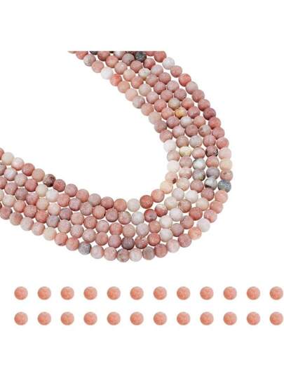 MAGICALCUTDIE 5 Strands About 480 Pcs Mixed Natural Stone Beads 4mm Round Natural Marble Beads Sesame Jasper Beads Frosted Loose Gemstone Beads For Bracelet Necklace Jewelry Making - Watermelon Pink - View 4