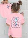 Girls' Casual Cute Cartoon Fish, Porcelain Pattern, Whale, Bow Tie, Seaweed Graphic Print Basic Short T-Shirt, Comfortable Daily Wear, Cozy Summer Styles, Suitable For Spring, Summer, Autumn, Pink