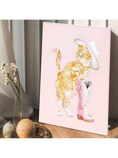 1 Framed Canvas Poster Fashion Kitten Pink Lady Hat And Pink Boots Wall Art Canvas Painting Bedroom Living Room Hallway Wall Art Wall Decor Ideal Gift For Room Decoration - Multicolor - View 1