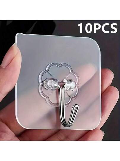 10pcs Damage-Free No-Drill Wall Hooks, Metal & Plastic Self-Adhesive Hook Racks Suitable For Keys, Hats, Towels, Casual Style, Easy To Install Wall Mounted Organizer For Bathroom, Bedroom, Office And Kitchen - White - View 1
